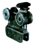 四轮推钩是牵引链条中给积放承载车组传递动力的重要部件,它是由双铰接链连接起来,其间距为206的整数倍。推钩架用高强度优质合金钢模锻成形,并经过热处理提高其耐磨性能。